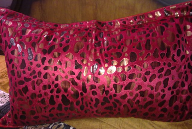 روبالشی طرح چرم مدل پلنگی رنگ قرمز کد A-05