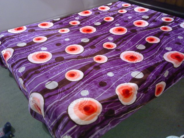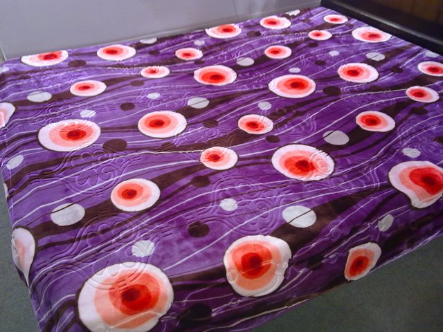 پتو عروسین خارجی گل برجسته با گلهای بنفش رنگ