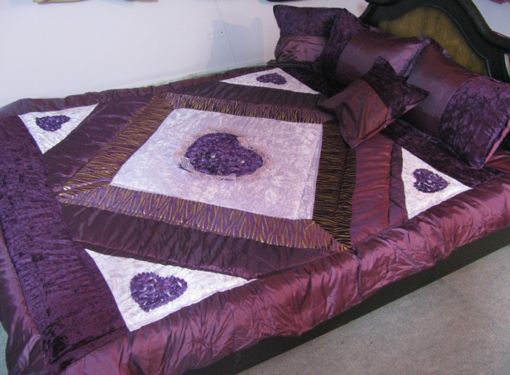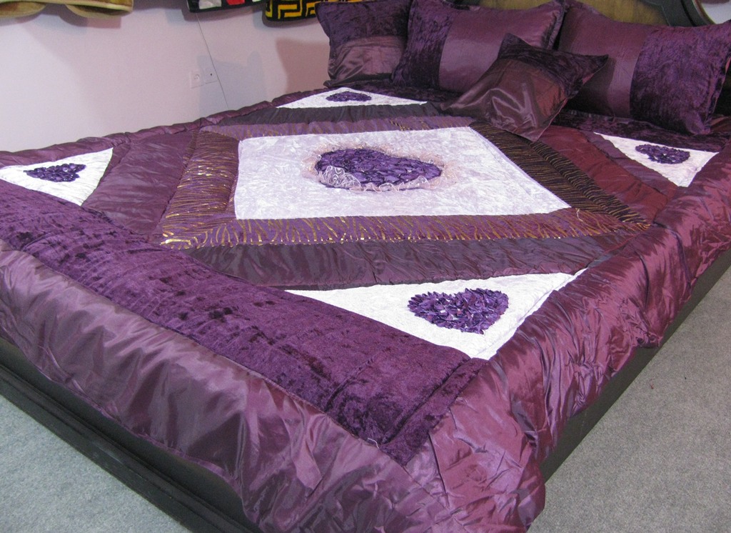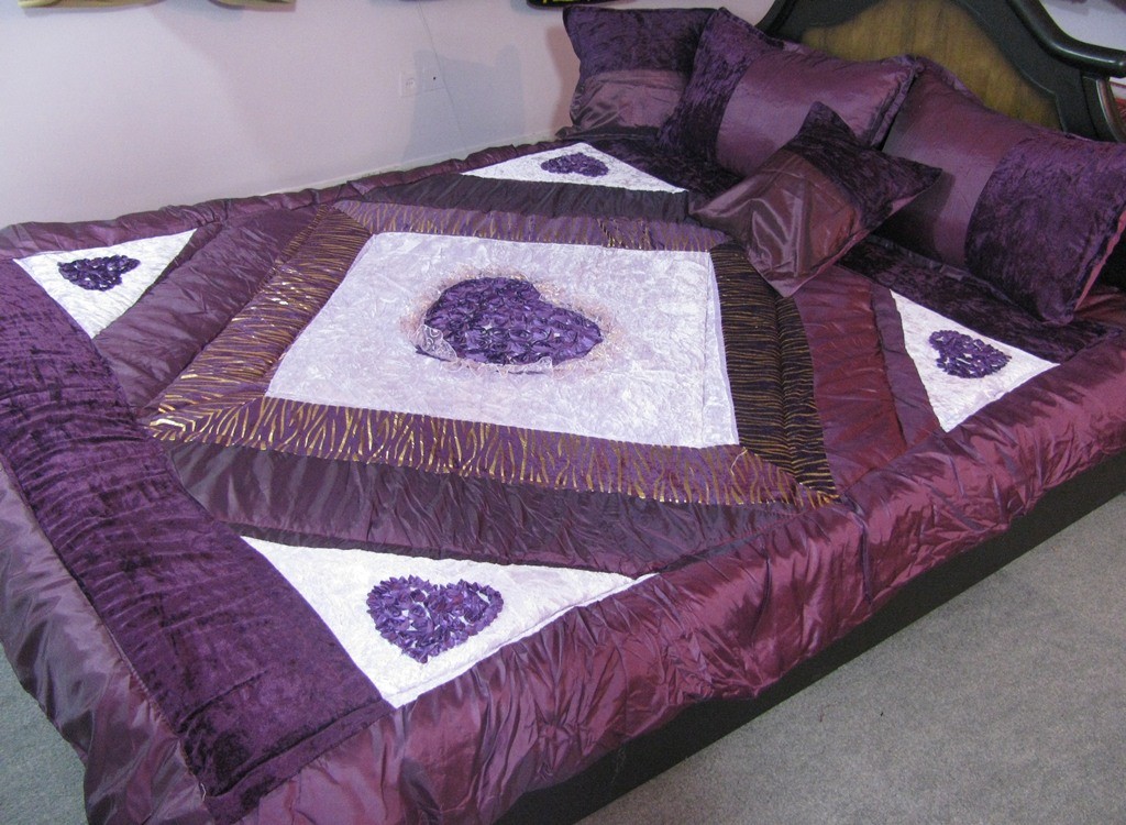 »» لحاف روتختی 5 قلبی ساتن مخمل 6 تیکه رنگ بنفش